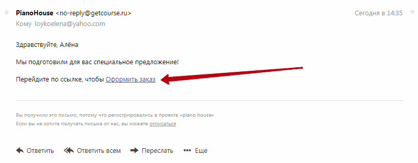 Efetuar pedido - texto que aparece no e-mail para o usuário