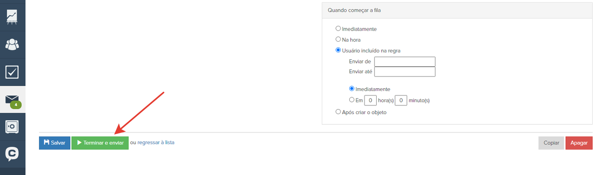 Mas, se você adicionou uma nova mensagem com um atraso de "1 dia da anterior", e o usuário recebeu a mensagem anterior há uma semana, uma nova mensagem será enviada a ele imediatamente após o início da sequência, uma vez que o atraso entre as mensagens é maior do que o especificado.