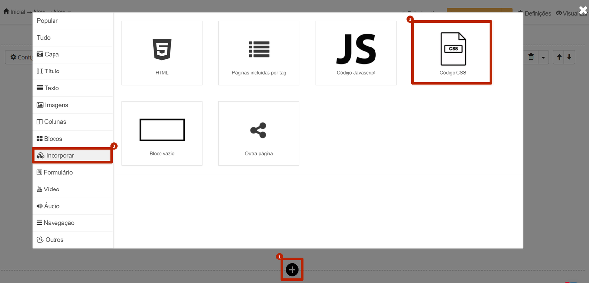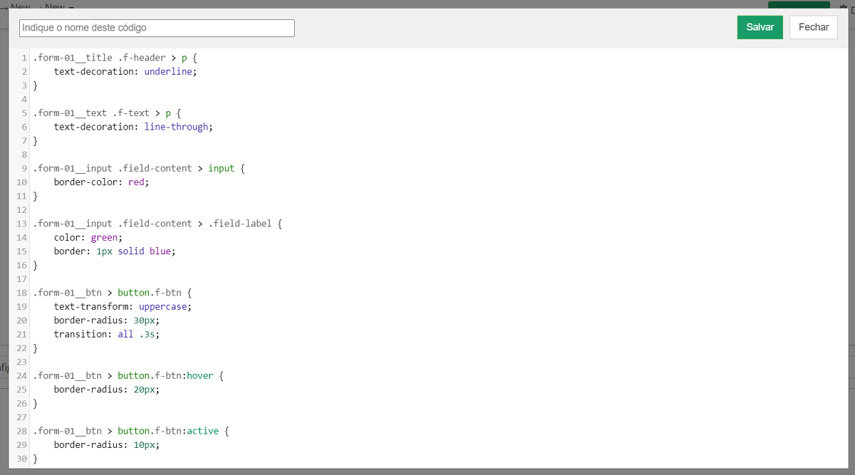 Selecionar o bloco "Código CSS"