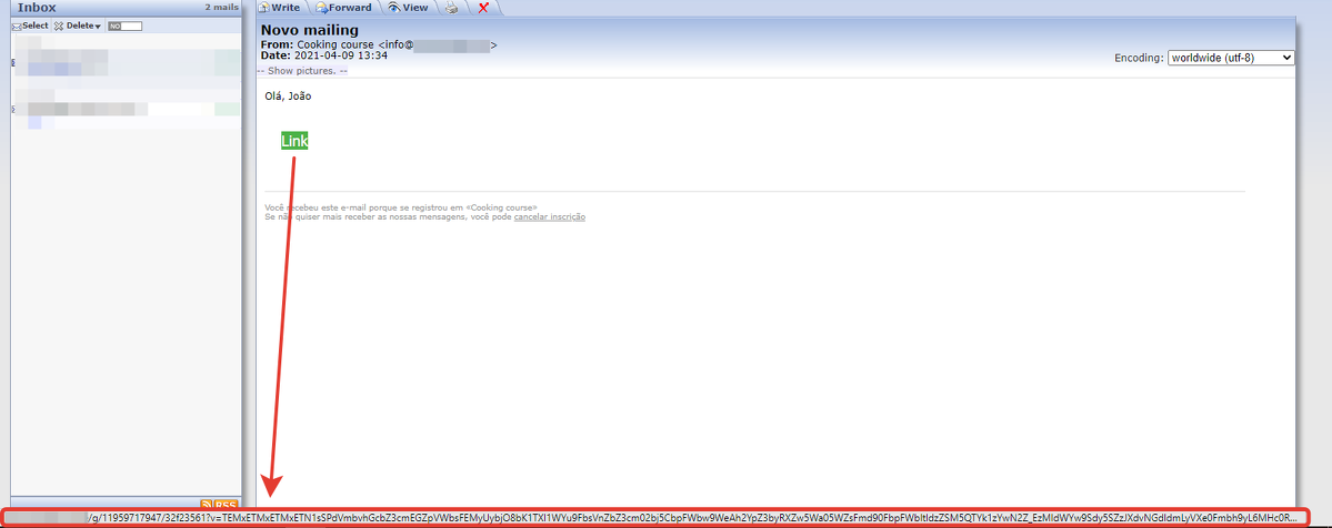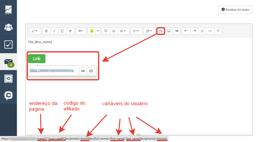 No exemplo abaixo, vamos analisar como o link em questão funciona na lista de e-mails da base de afiliados.