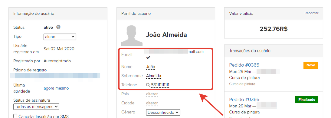 Telefone do usuário - {{Phone}}