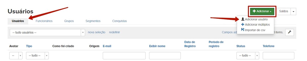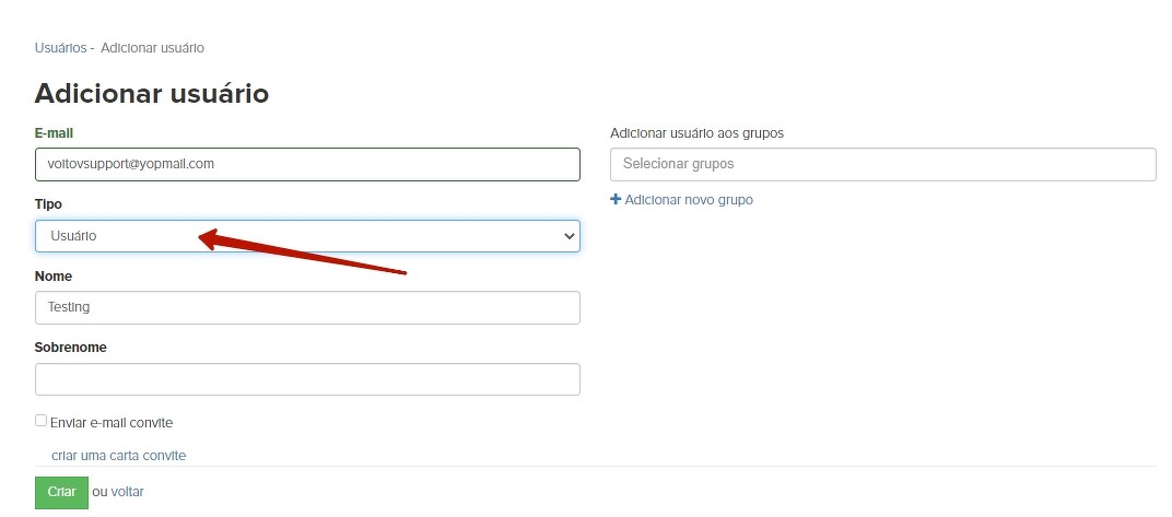 Também é possível adicionar manualmente um usuário de teste no sistema, para a verificação.
