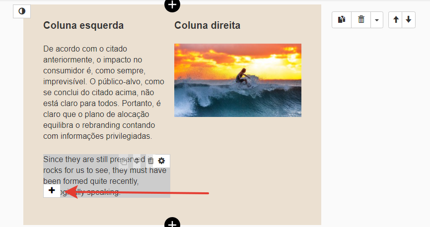 Clique no "Sinal de mais" que aparece na parte inferior do sub-bloco e adicione o que você precisa.