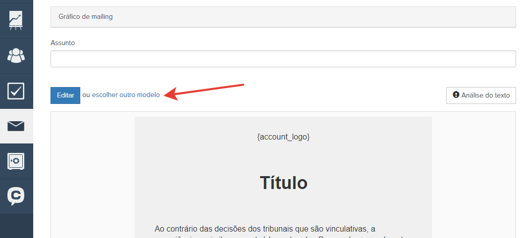 Você pode selecionar outro modelo de lista de e-mails após a criação da mensagem.