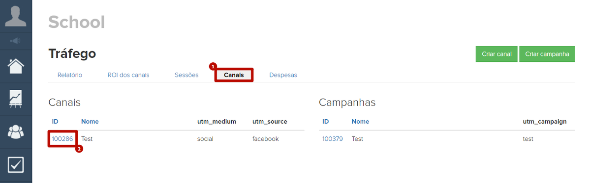 Para adicionar uma despesas (ou várias) em um canal de publicidade, é necessário clicar na ID do canal na seção "Tráfego", na aba "Canais".