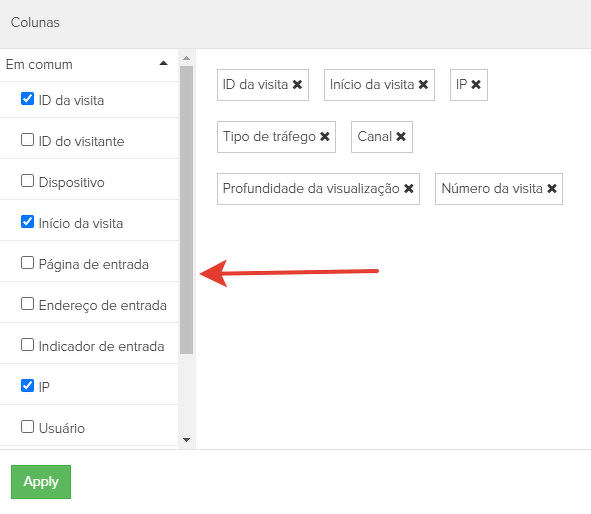 Para isto, clique no botão "Colunas" e selecione as desejadas.