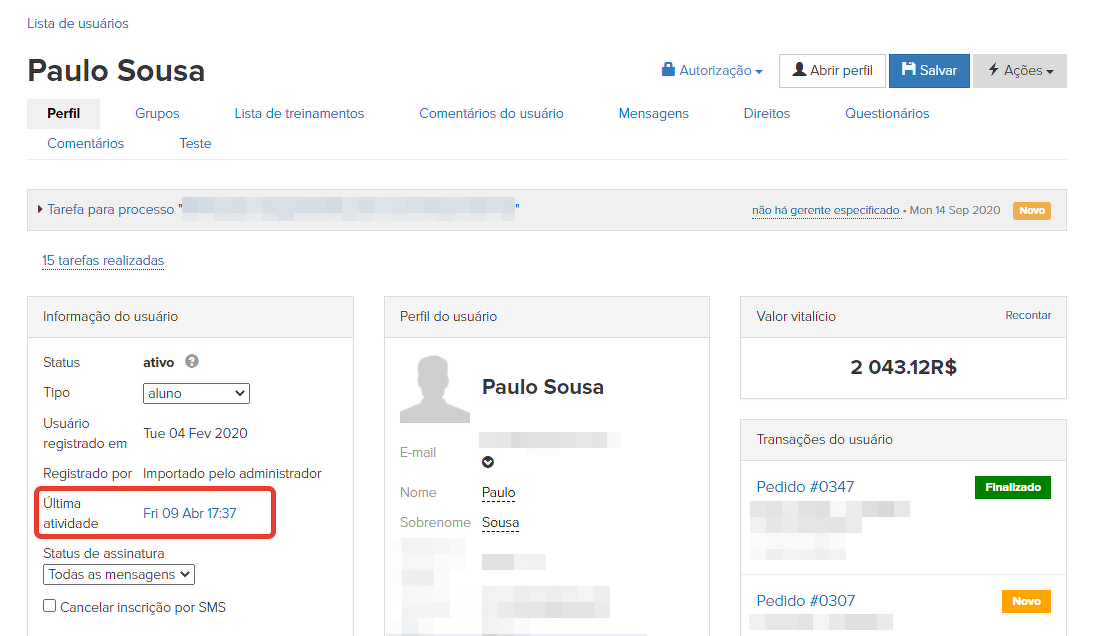 Você pode encontrar sessões de usuário por vários parâmetros. Isto pode ser útil, por exemplo, para a análise de visitas e do comportamento dos visitantes.