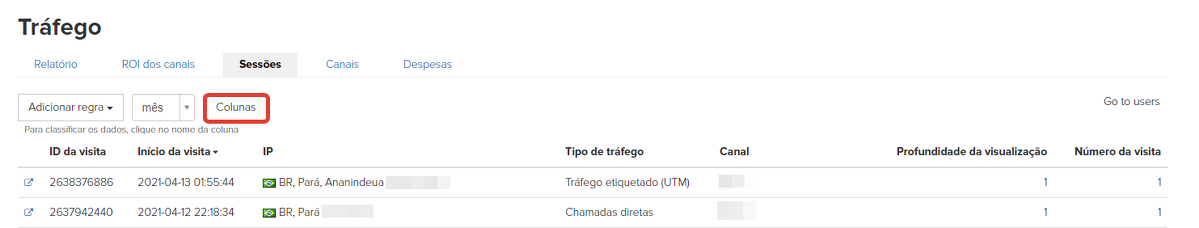 É justamente nas sessões que você pode ver os usuários que possuem vários logins ou aqueles que usam um só para acessar o conteúdo (mobilização de fundos).
