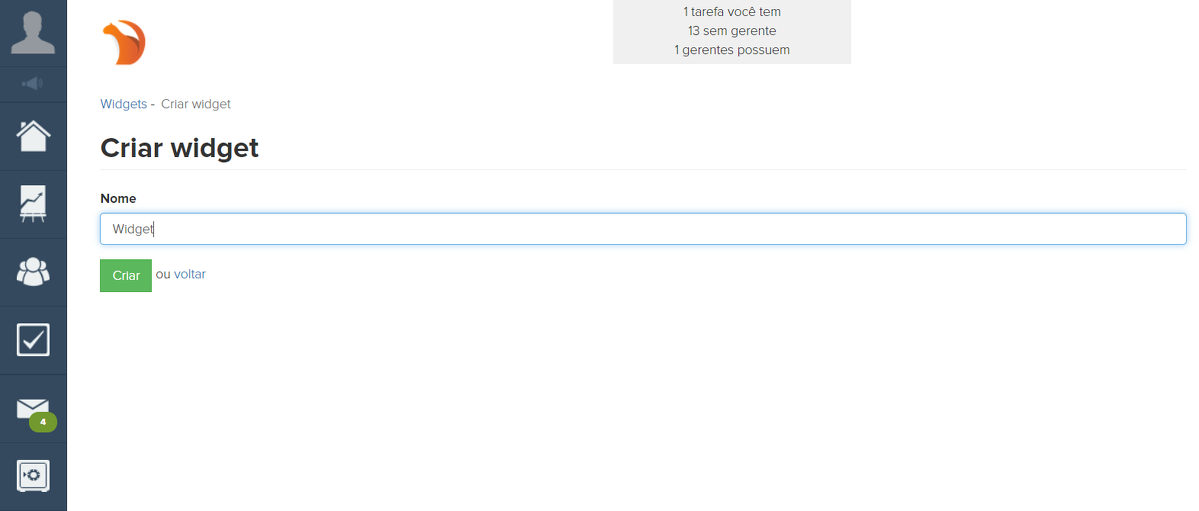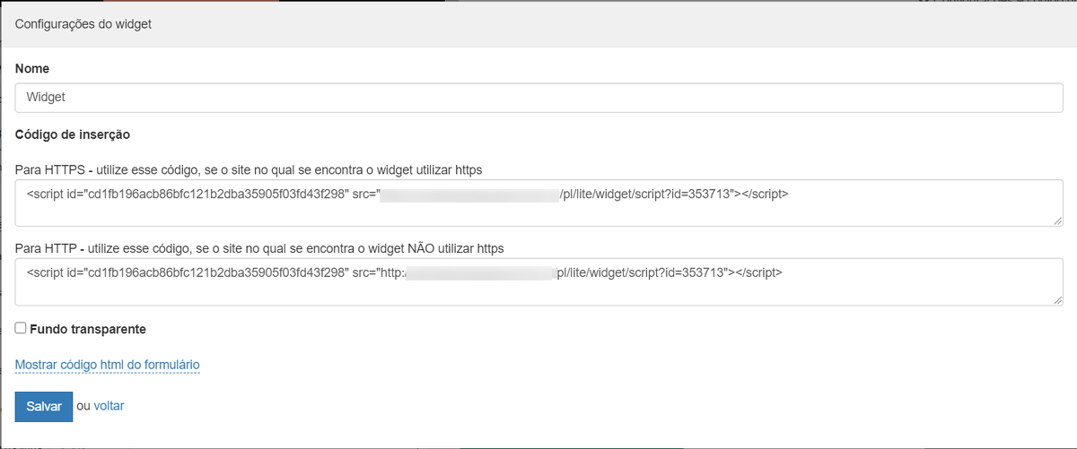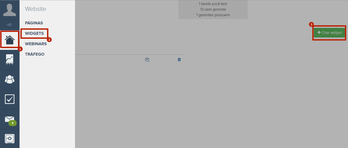 Vá na seção do menu "Site" - "Widget" - "Criar widget":