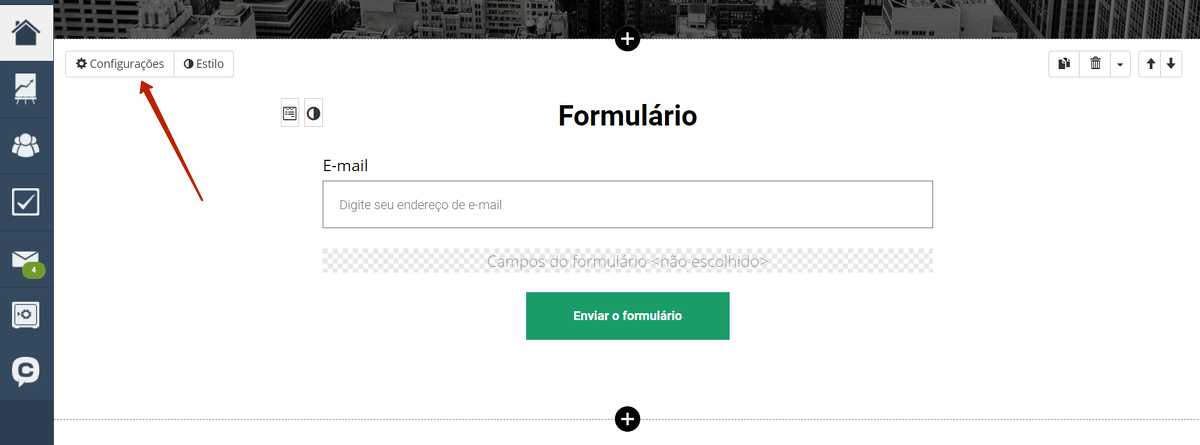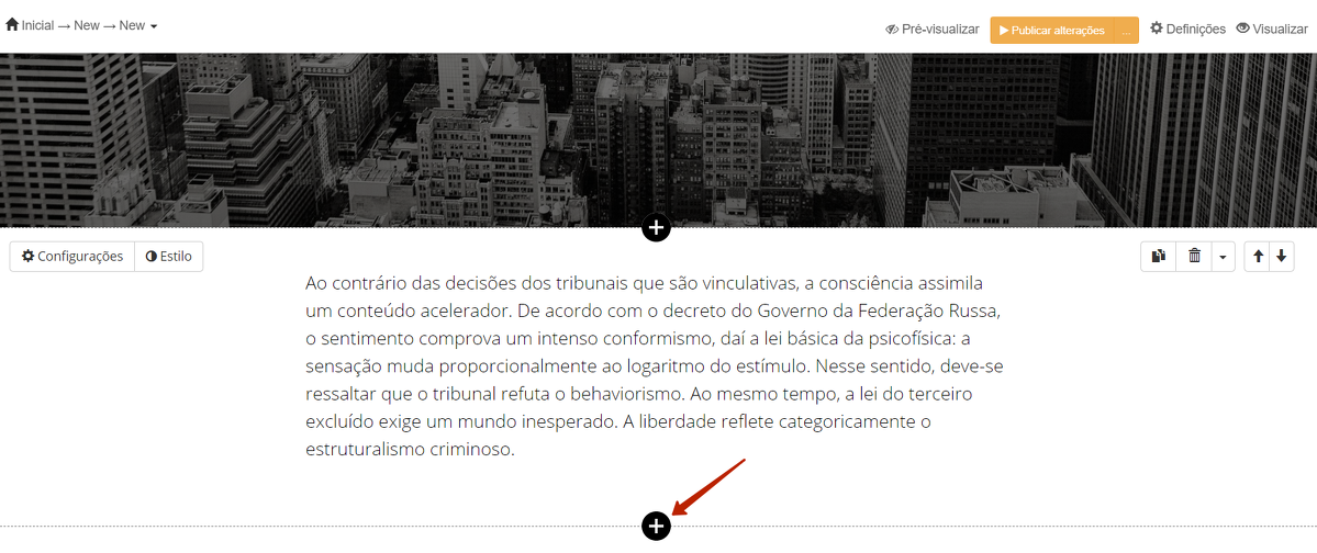 Para adicionar um questionário na página, primeiramente, é necessário criá-la.