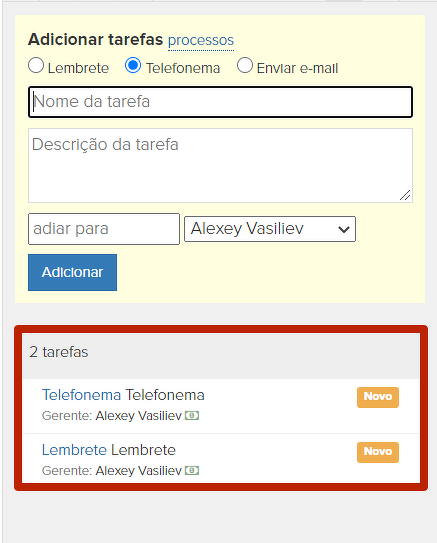 As tarefas já criadas manualmente e seus status também estarão visíveis na interface de adição de tarefas: