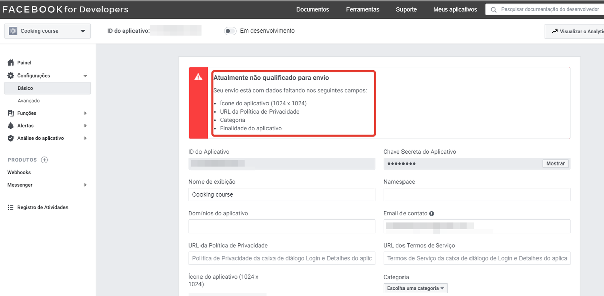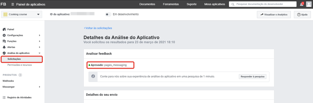 Quando o seu aplicativo estiver confirmado, o Facebook te enviará uma notificação.