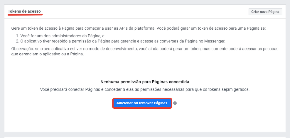 Instruções de conexão do Facebook Messenger