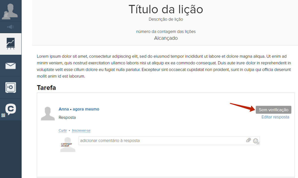2. Pode responder, mas sem verificação - o aluno vê a tarefa e pode responder. A resposta é exibida com o status “Sem verificação”, o professor não recebe uma notificação sobre a resposta e ela não é exibida no feed de respostas.