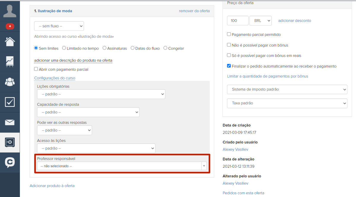 Importante: para o correto funcionamento após o início das vendas, não é recomendável excluir produtos e ofertas, bem como fazer alterações nos mesmos. Essas ações podem levar à perda de acesso ao curso para clientes com compras ativas e afetar negativamente os pedidos e as compras.