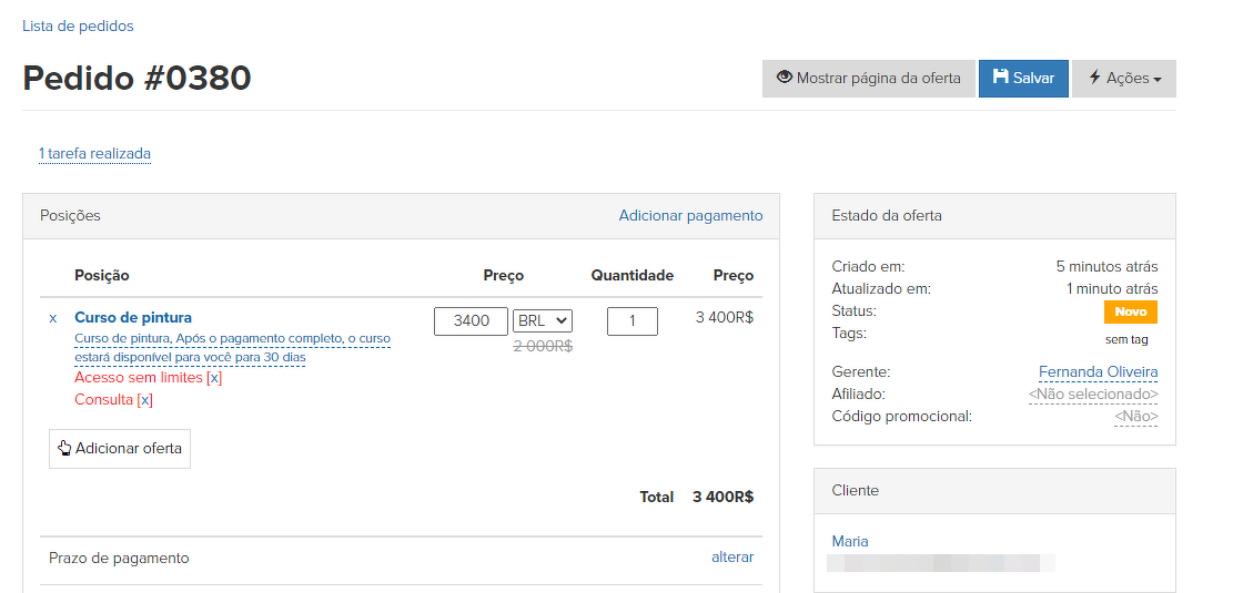 Importante: para o correto funcionamento após o início das vendas, não é recomendável excluir produtos e ofertas, bem como fazer alterações nos mesmos. Essas ações podem levar à perda de acesso ao curso para clientes com compras ativas e afetar negativamente os pedidos e as compras.