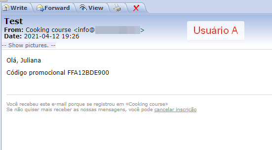 Agora, pode ser emitido um código promocional exclusivo para cada usuário: seja em uma mensagem, seja na página.