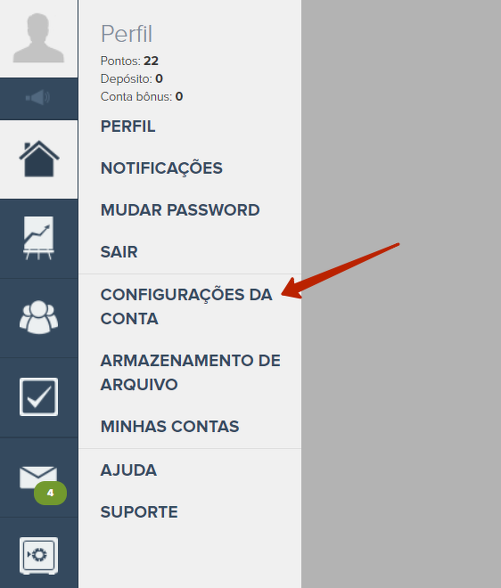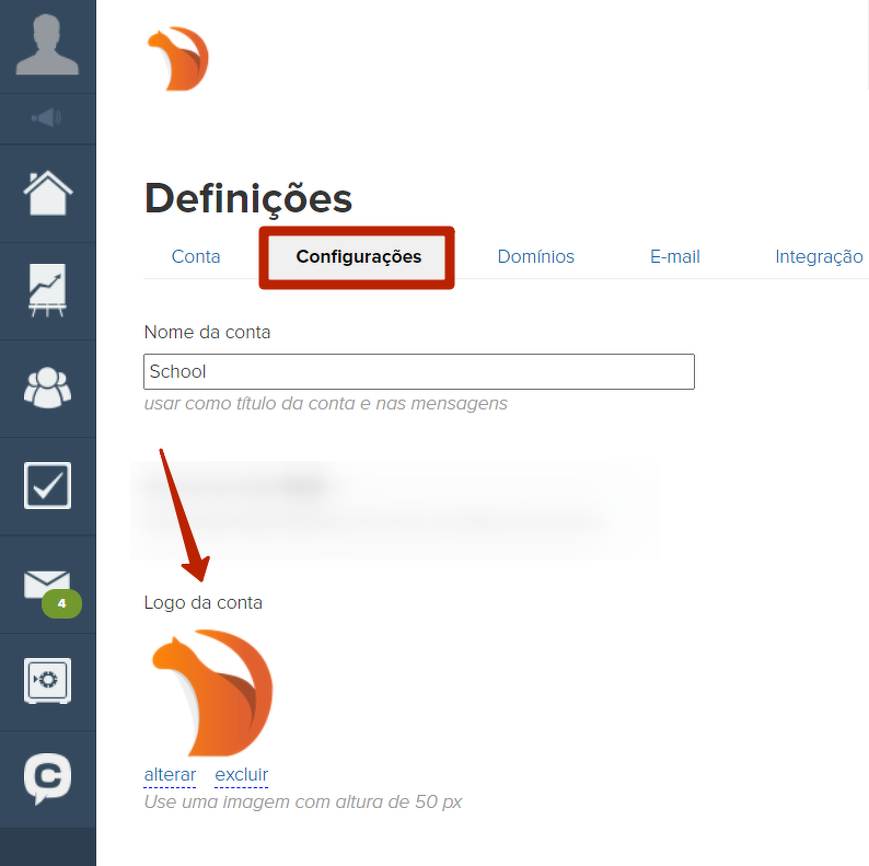 O logotipo da conta é configurado na seção "Perfil - Configurações da conta - Configurações".