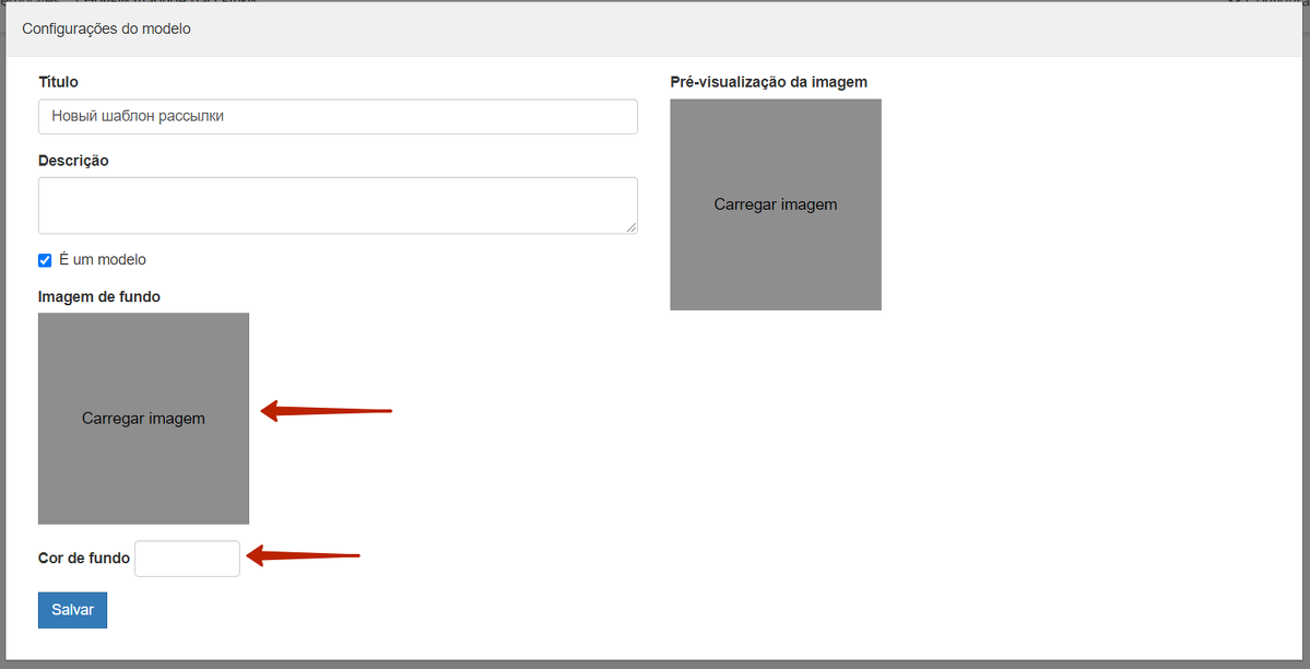 Na janela que irá se abrir, dê um nome ao modelo. Você também pode escolher uma cor de fundo ao redor do campo principal da mensagem ou fazer upload de uma imagem para esse fundo.