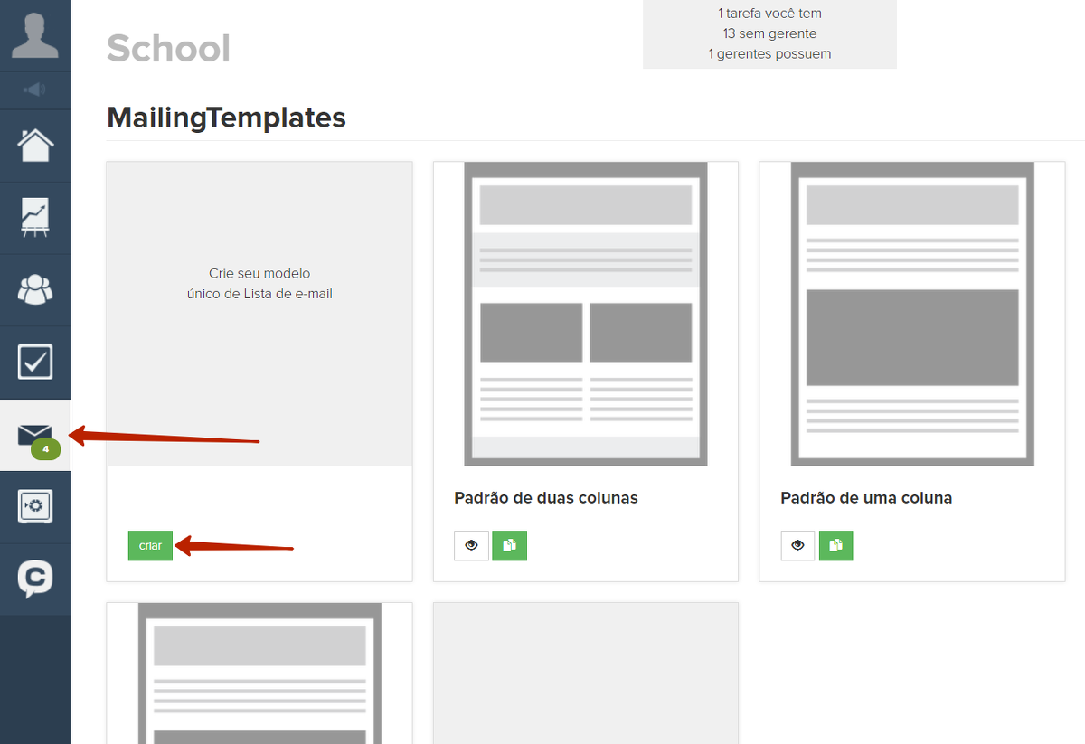 Você também pode criar seu próprio modelo de mensagem. Vá em “Envelope” no menu à esquerda, depois em “Modelos”. Escolha criar um novo modelo.