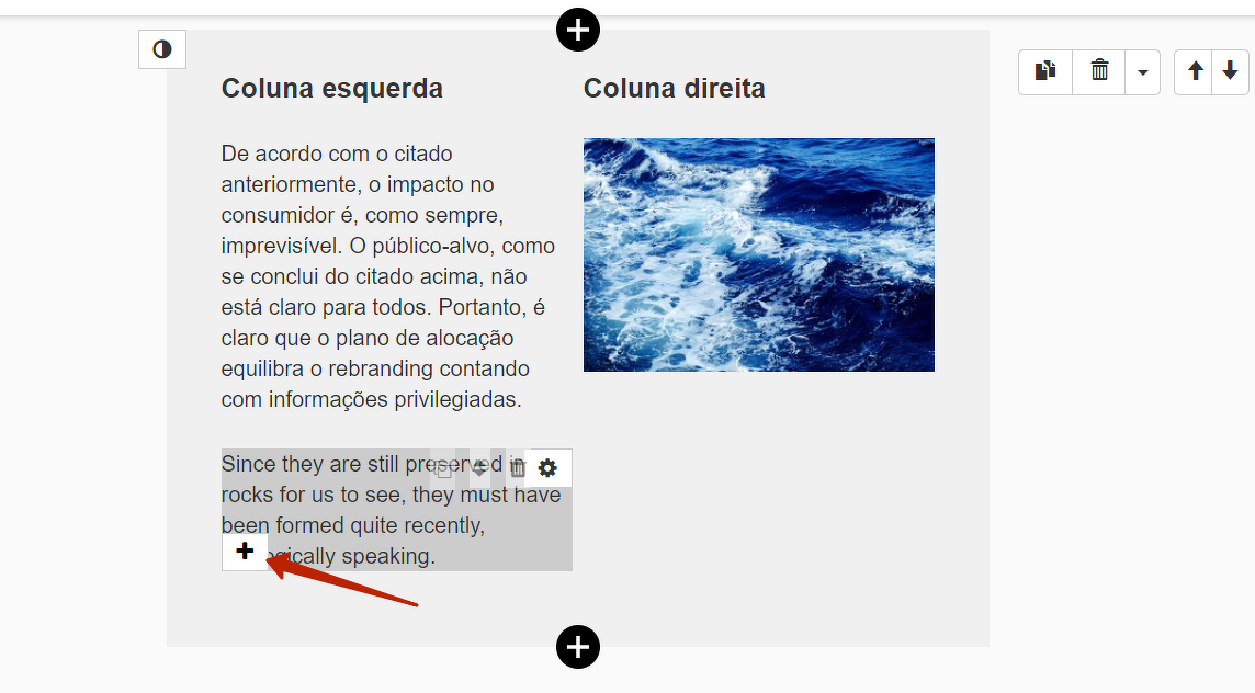 Abaixo está um exemplo de como você pode preencher um bloco de duas colunas com conteúdo.