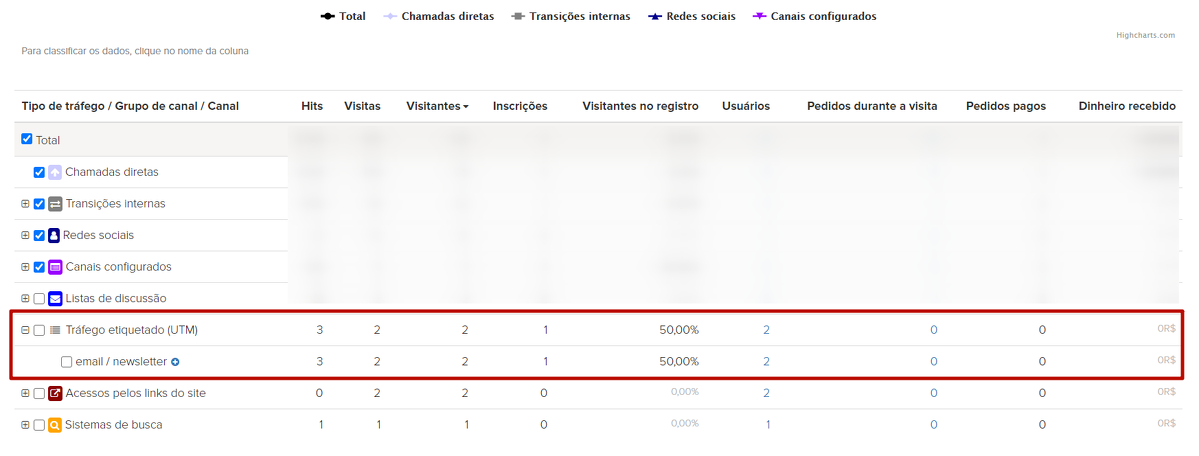 Na GetCourse, as tags UTM são exibidas por padrão em "Tráfego" > "Tráfego Marcado":