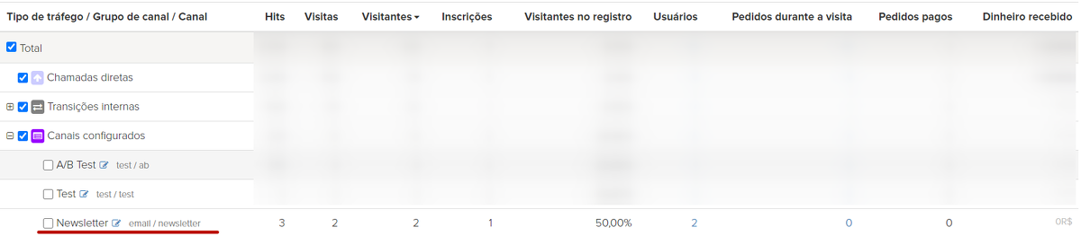 Para a comodidade de trabalhar com tags UTM, você pode usar as ferramentas internas "Canais" e "Campanhas". Com a ajuda delas, você pode adicionar um grupo de tags sob o nome desejado.