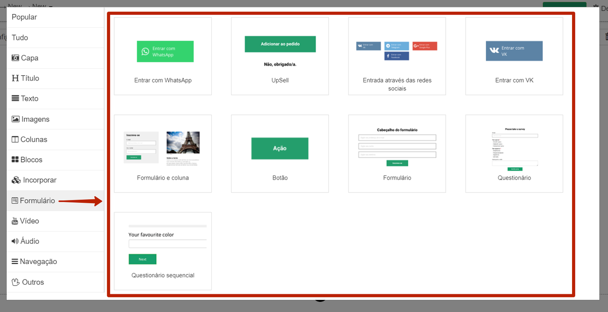 Para criar um bloco, por exemplo, com um formulário pop-up, você precisa primeiro criar o próprio formulário.