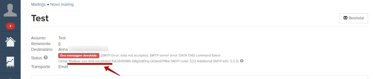 Provavelmente, ao analisar as estatísticas de listas de e-mail, você já tenha se deparado com o erro "Mailbox size limit exceeded"? Este é um exemplo de uma caixa de correio que estava cheia de mensagens ou bloqueada porque o destinatário não a usava há muito tempo. Esse endereço é um candidato potencial para uma futura armadilha de spam. Portanto, recomendamos cancelar a assinatura de usuários que não leem suas mensagens por um longo tempo.