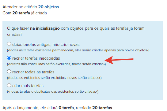 Atenção: se você recriar tarefas, as ações de processo realizadas anteriormente serão executadas novamente.