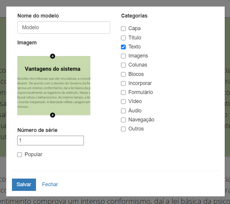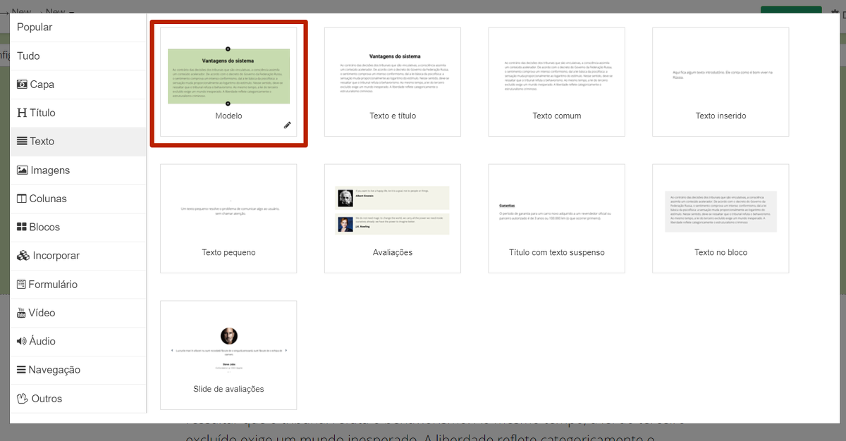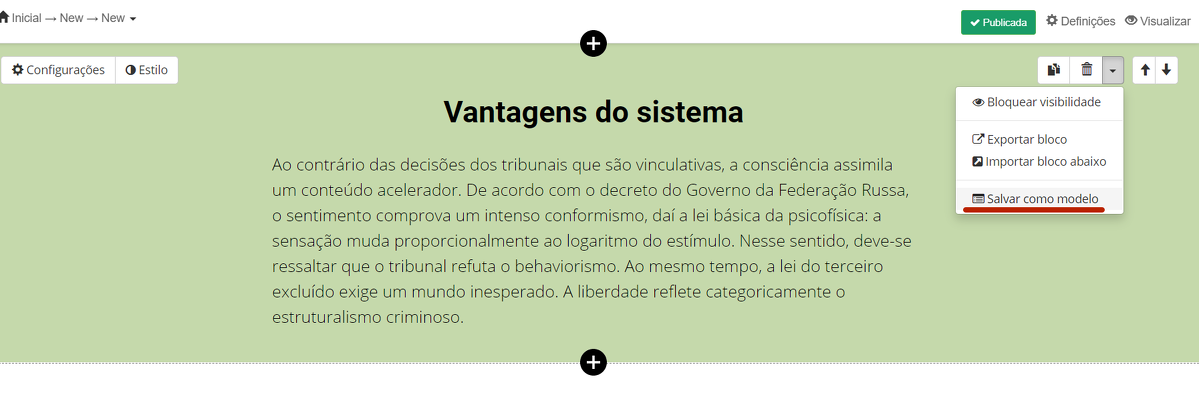 O bloco finalizado pode ser salvo como um modelo e, no futuro, você pode usar este modelo com as configurações já salvas nele: