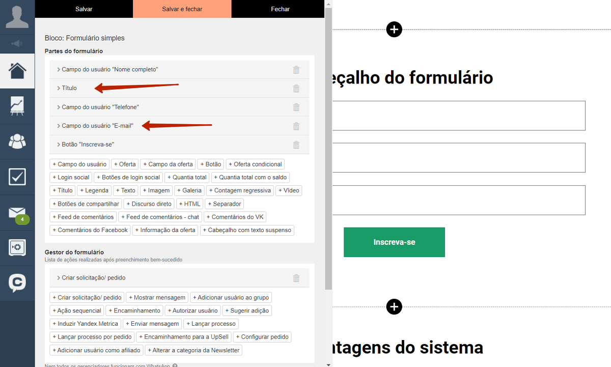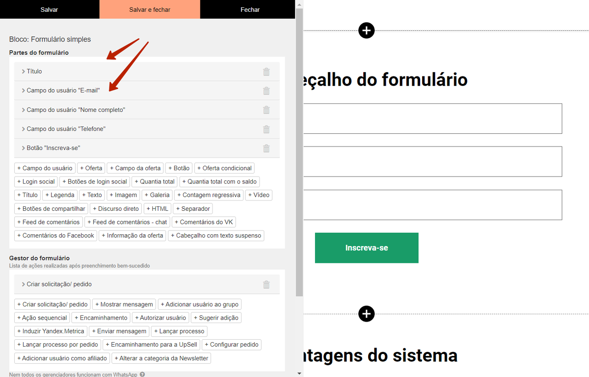 Se em um bloco é possível inserir vários elementos, você pode ajustar a ordem de exibição das partes do formulário na página. Para isso, você precisa "pegar" o campo escolhido e arrastá-lo para o local selecionado na ordem de exibição.