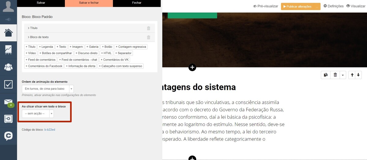 - Mostrar bloco pop-up