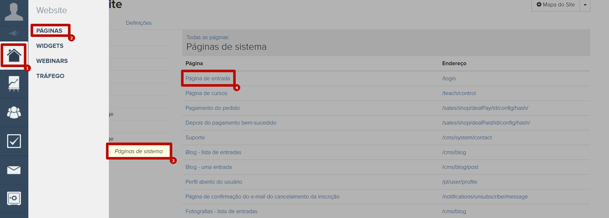 Para isso, acesse as configurações da página de login do sistema: