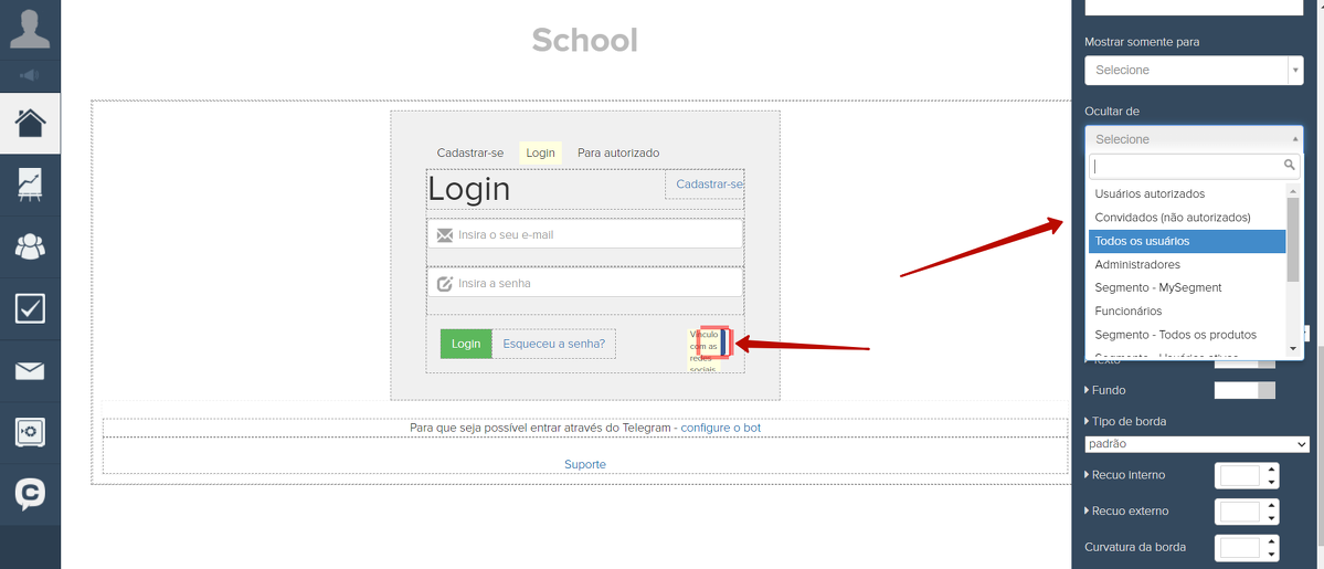 Selecione o bloco desejado e configure sua visibilidade: