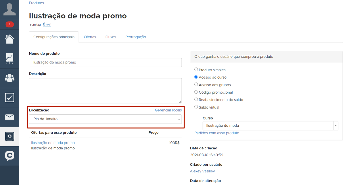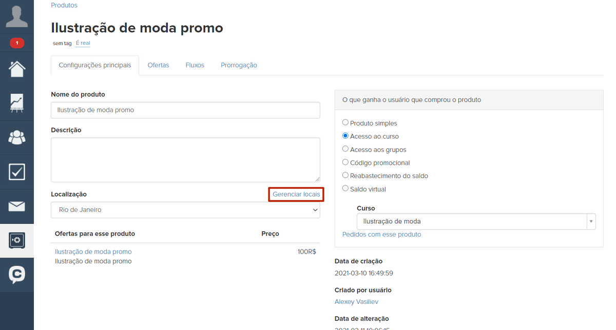 Importante: para um bom funcionamento, após o início das vendas não é recomendado excluir o produto, assim como fazer alterações nele. Tais ações podem levar à perda de acesso aos cursos dos clientes que possuem compras ativas e impactar negativamente as ofertas e pedidos.