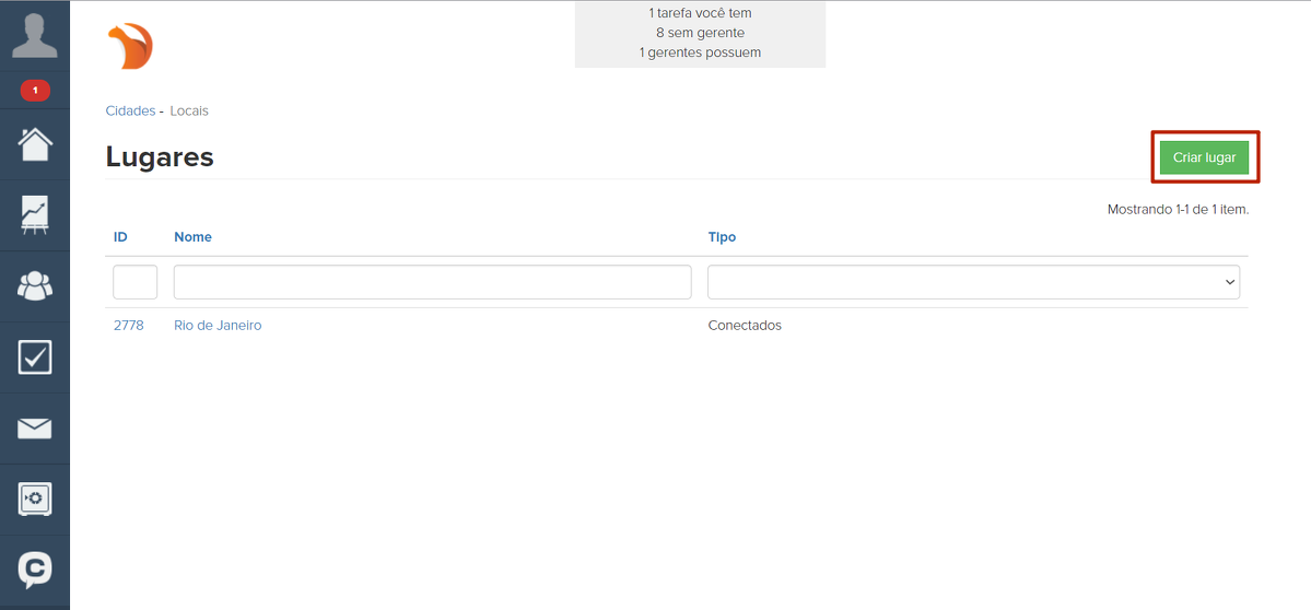 O local será exibido ao administrador na seção "Fluxos", isso permitirá que ele navegue com mais conforto entre os fluxos e filtre os aqueles que ocorrem em um determinado lugar.