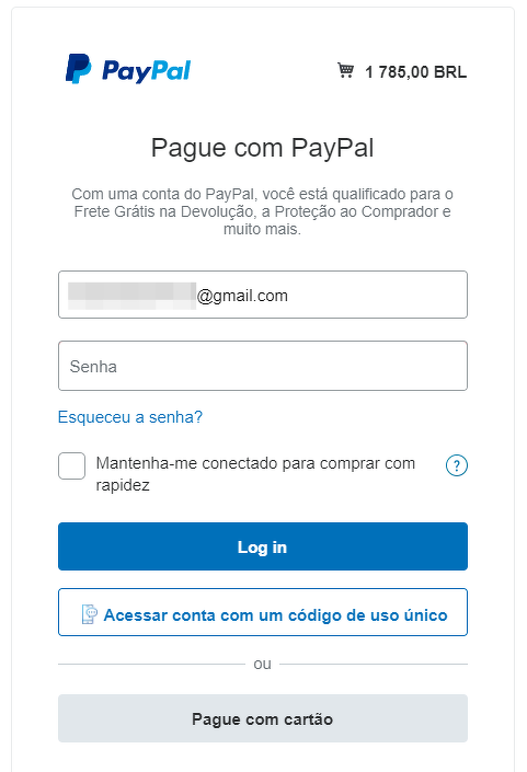 Para efetuar o pagamento, o usuário deverá efetuar o login/cadastro na conta pessoal do sistema de pagamento. Depois disso, ele poderá usar a conta PayPal para efetuar pagamentos ou com o cartão bancário vinculado à conta pessoal.