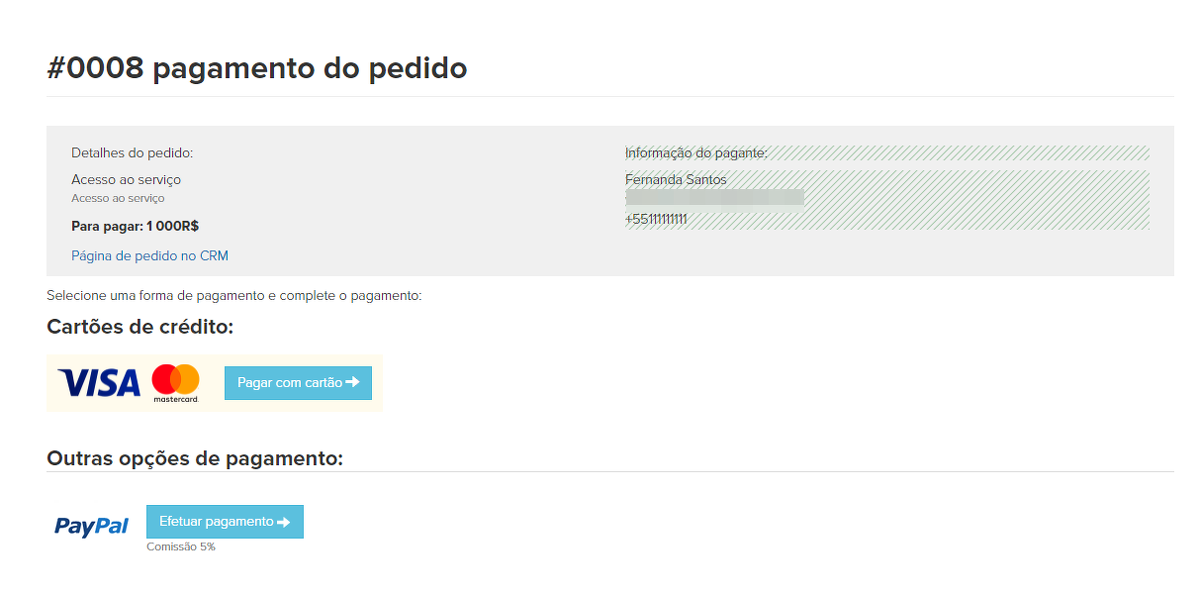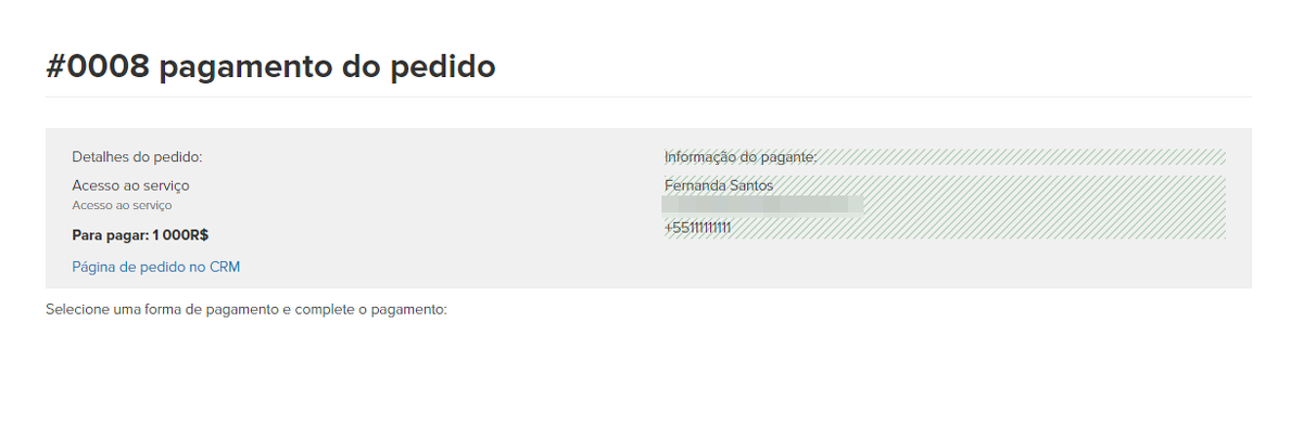 Nesta páginas, serão exibidas todas as variantes disponíveis de pagamento do pedido.