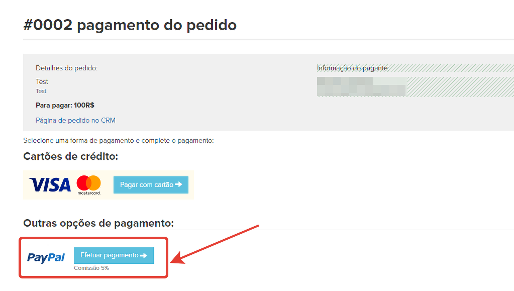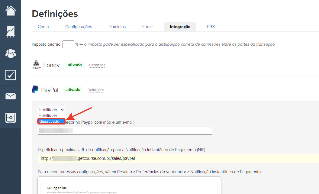 Se o sistema estiver desativado, ele não será mais exibido na lista de sistemas disponíveis na página de pagamento.