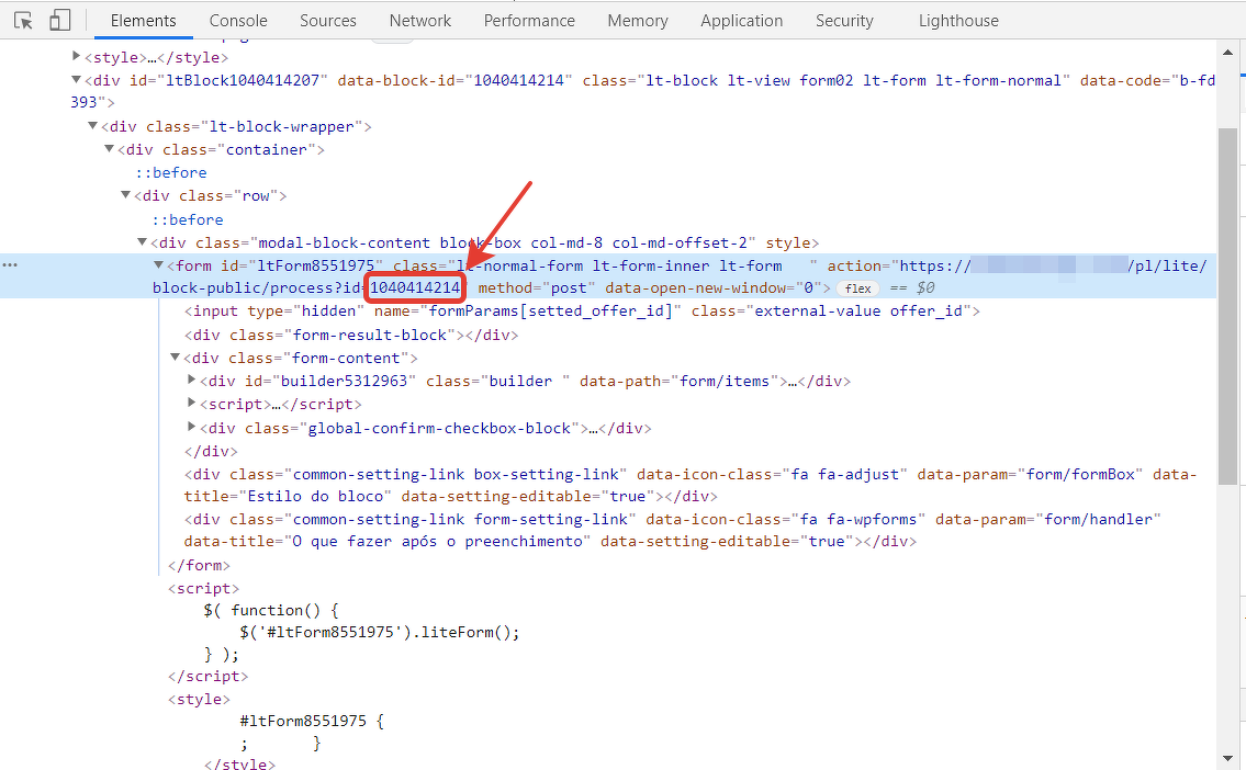 - Encontre o ID do formulário no código e salve.