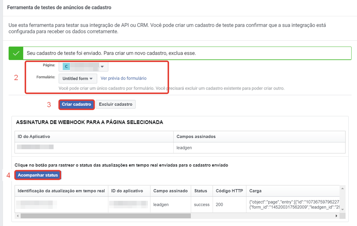 - Em seguida, é necessário verificar se os campos do formulário correspondem aos campos da campanha de anúncios do Facebook.