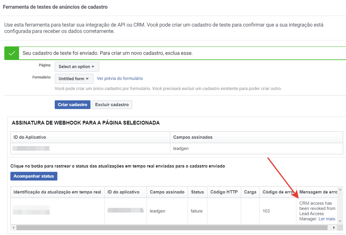Se, durante o teste, você receber o erro “CRM access has been revoked from Lead Access Manager”, siga as recomendações abaixo.