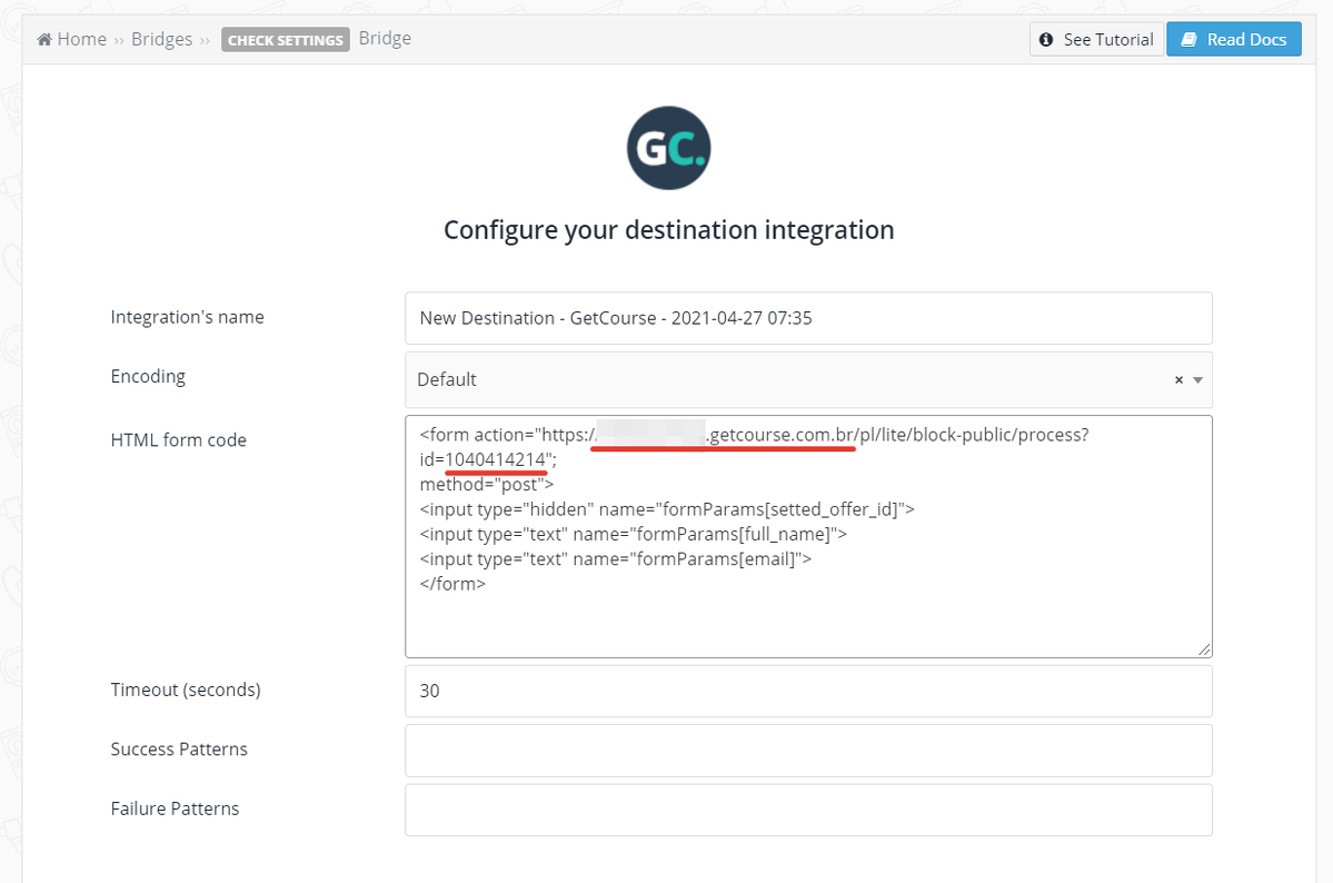 <form action="https://account_name.getcourse.com.br/pl/lite/block-public/process?id=ХХХХХХХХ"; method="post"> <input type="hidden" name="formParams[setted_offer_id]"> <input type="text" name="formParams[full_name]"> <input type="text" name="formParams[email]"> </form>