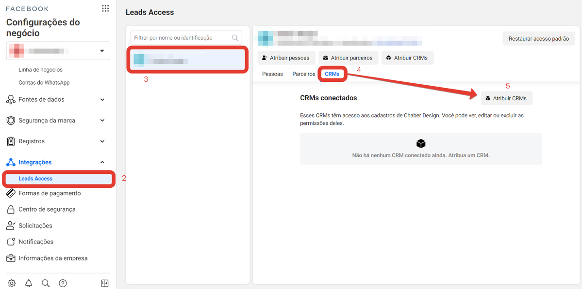 - Clique na aba “Aplicativos de integração” e depois em “Acesso ao lead”.