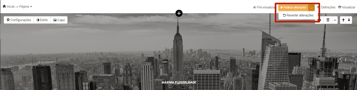 Ao editar uma página já publicada, clique em "Publicar alterações" para salvar as modificações realizadas. Se clicar em “Reverter alterações”, a página voltará para a última versão publicada.