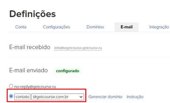 Para configurar o e-mail, você precisa apenas usar um domínio em alfabeto latino. No momento, não é possível configurar o e-mail com o domínio em alfabeto cirílico no GetCourse.