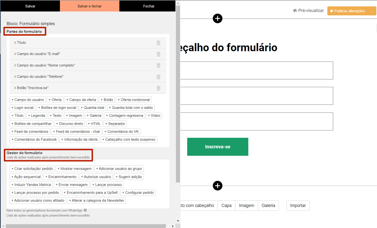 O formulário de captura é um dos blocos mais importantes do construtor, pois é com ele que os usuários se cadastram em seu projeto, assinam os mailings e fazem pedidos.