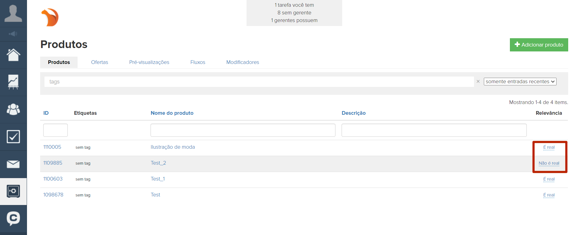Para ocultar produtos desatualizados, é preciso marcá-los como “Desatualizados”.