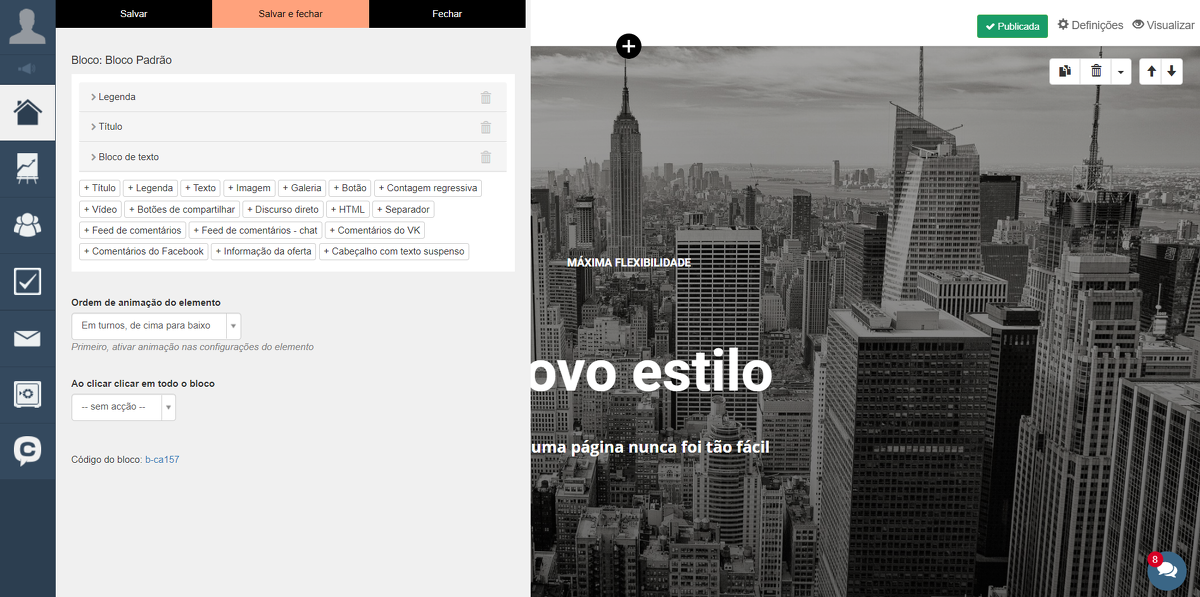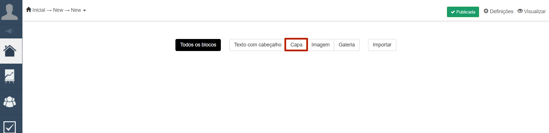 Adicione um bloco clicando no botão "Capa":